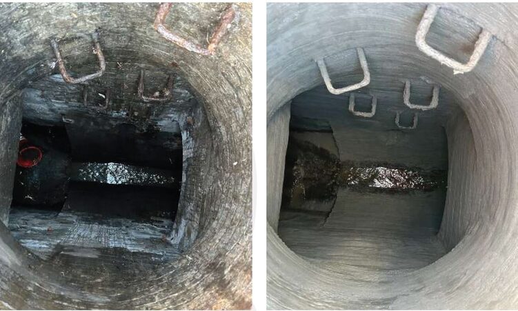 Finally the team spin-cast and spray-applied approximately 1 in. of Quadex® GeoKrete structural geopolymer mortar onto each one to restore their structural integrity. Once troweled to a smooth finish, the manholes were ready for service in less than 24 hours.