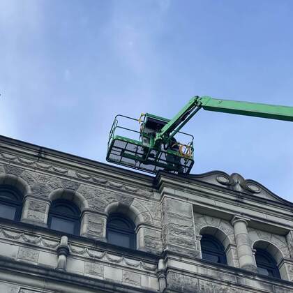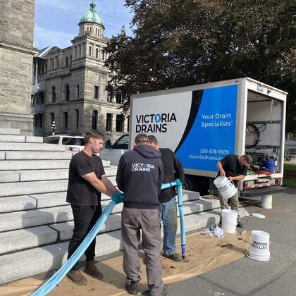 Built in 1898, the BC Legislature building was having issues with their 4” internal rain water drains. The rain water drains are 127 years old and were experiencing constant plugging and build up. With the rain water drains being incorporated within the building, replacing them was not a feasible option.
